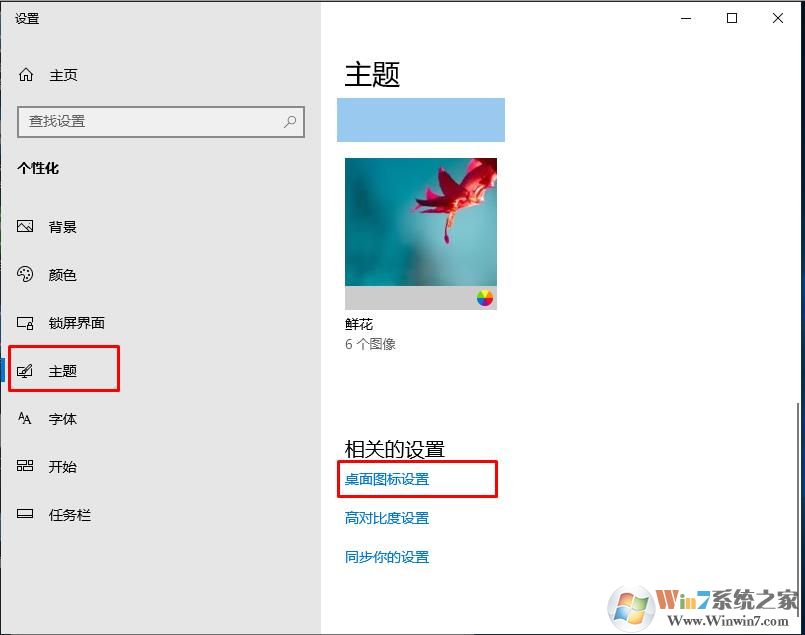 2、然后來到主題分類,點擊下面的 桌面圖標(biāo)設(shè)置;