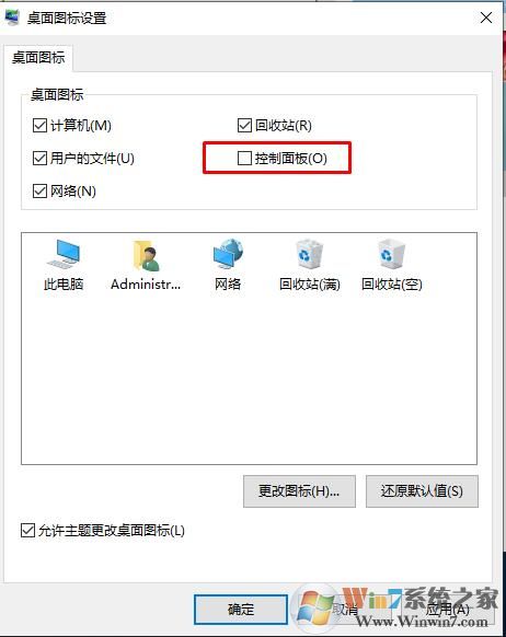 3、勾選控制面板選項,應(yīng)用就可以把圖標(biāo)顯示在桌面上了。