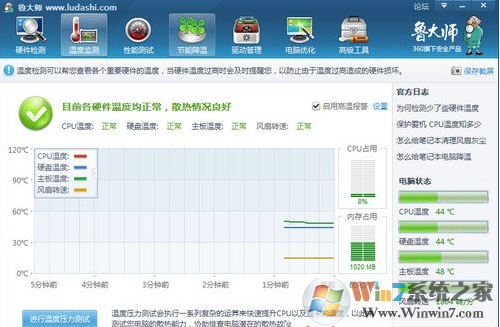 計算機溫度一般包括CPU、顯卡、主板溫度,30—60都是正常范圍。低于30要么你的散熱強勁,要么溫度計壞了。超過70就過熱了,影響壽命。如果到達(dá)70度以上的話小編真的建議親送去檢修了,不然分分鐘燒壞的節(jié)奏。也可一參考小便的教程嘗試解決一下:電腦主板溫度過高怎么辦?主板溫度過高是什么原因造成的?