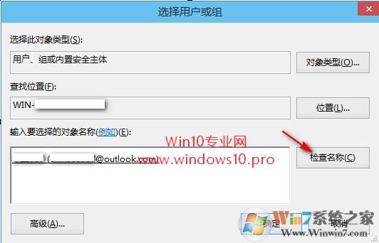 在“輸入要選擇的對象名稱”框中輸入當(dāng)前用戶名,然后點擊右側(cè)的“檢查名稱”按鈕。如果輸入正確,點擊“檢查名稱”之后就會自動把你輸入的對象名稱顯示為標準的用戶名稱,并添加下劃線(如上圖);反之,如果輸入的用戶名錯誤,點擊“檢查名稱”之后就會顯示提示。