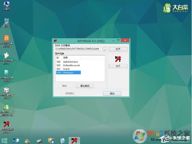 3、進(jìn)入到pe系統(tǒng)之后,雙擊桌面上的【登錄密碼清除】,打開(kāi)主界面,SAM文件路徑自動(dòng)提取到,直接點(diǎn)擊【打開(kāi)】;