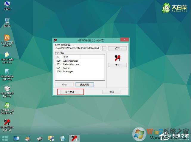 6、修改之后,要點(diǎn)擊【保存更改】,最后退出,重啟電腦,重啟之后,系統(tǒng)會(huì)執(zhí)行磁盤檢查,不同管它,這樣密碼就成功刪除了。