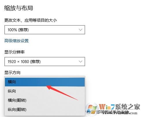 2、在縮放與布局——顯示方向——選擇橫向即可。
