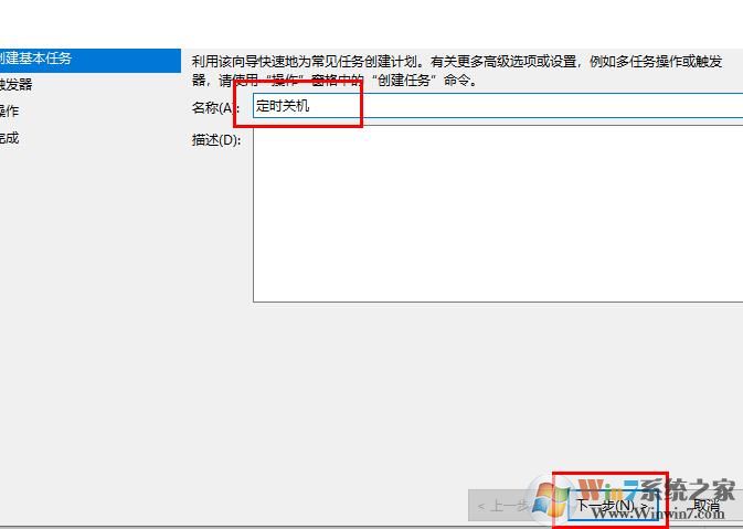 4、這里填一個“定時關(guān)機(jī)”點擊“下一步”