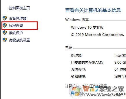 3、然后在左側(cè)選擇“遠(yuǎn)程設(shè)置”