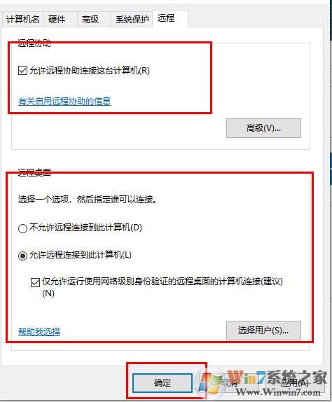 4、點(diǎn)擊“遠(yuǎn)程”勾選“允許遠(yuǎn)程協(xié)助連接這臺計(jì)算機(jī)”和“允許遠(yuǎn)程連接到此計(jì)算機(jī)”點(diǎn)擊“確定”這樣我們這臺電腦就允許其它電腦遠(yuǎn)程協(xié)助了。