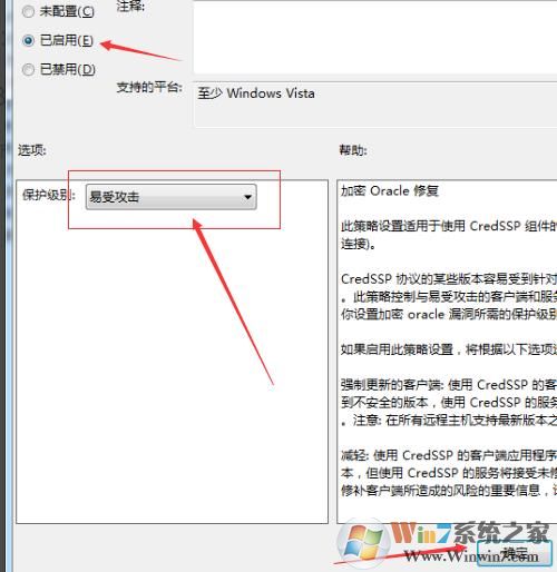 2、展開計(jì)算機(jī)配置—>管理模板—>系統(tǒng)—>憑據(jù)分配—>加密Oracle修正 選擇“啟用并選擇易受攻擊”。