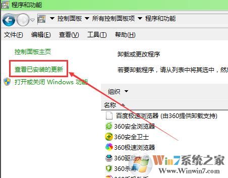 3、點(diǎn)擊左側(cè)“查看已安裝的更新”