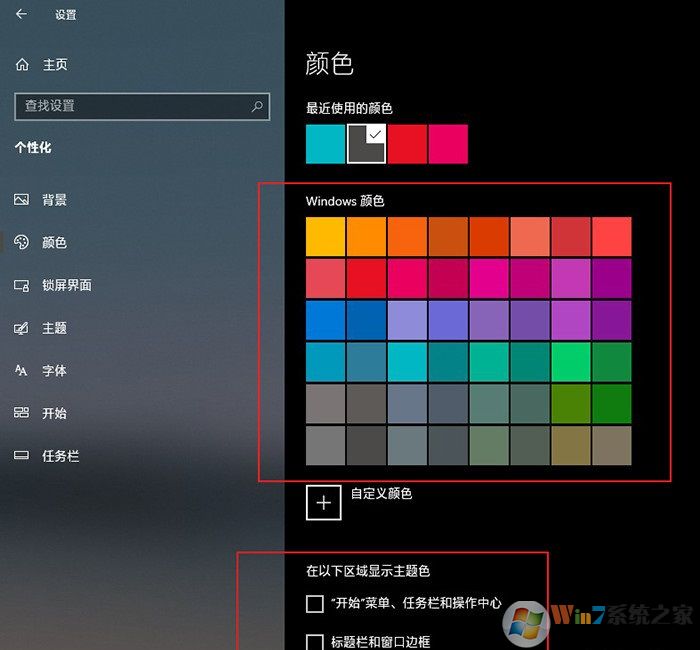 解決方法是在“設(shè)置”→“個性化”→“顏色”中,將主題色改為深色。修改完成后,最好也將“‘開始’菜單、任務(wù)欄和操作中心”、“標題欄和窗口邊框”前面的復(fù)選框取消,這樣可以讓深色的效果更明顯!