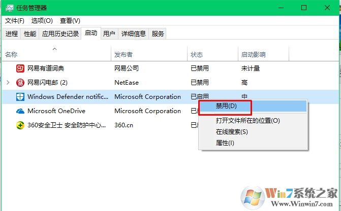 6、在任務(wù)管理器選擇需要禁用的程序,右鍵點擊禁用或者啟動即可。