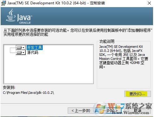 2、點擊下一步,點擊更改選擇安裝目錄,我選擇的是:D:\Program Files\Java\jdk-10.0.2\