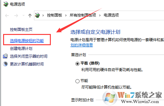 第二步:在打開的電源選項窗口中,點擊左側(cè)的選擇電源按鈕的功能。