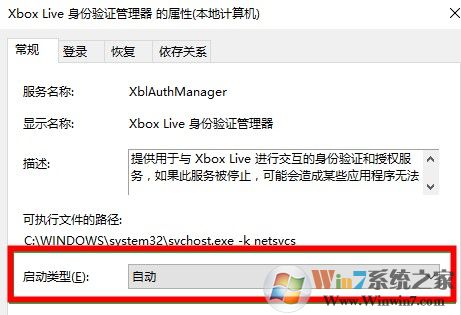 5、在xbox live身份驗(yàn)證管理器服務(wù)——右擊選擇屬性——下拉啟動(dòng)類(lèi)型選擇自動(dòng)——點(diǎn)擊確定即可。