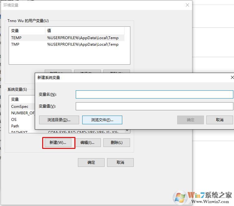 4、接下來就是具體的配置過程:點擊“系統(tǒng)變量”下面的”新建“選項