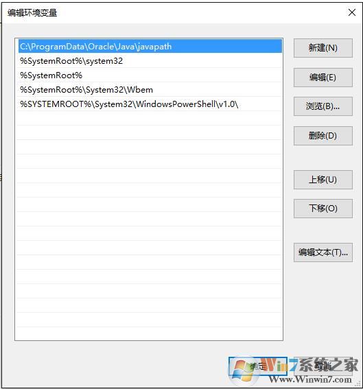 7、選擇右邊的“編輯文本”,將引號里面的全部復制“ %Java_Home%\bin;%Java_Home%\jre\bin; ”,到“變量值”欄的最前面,“確定”