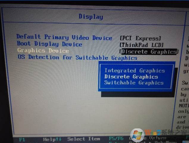 4、第二項(xiàng)——Boot Display Device,選擇在引導(dǎo)時(shí)需要處于活動(dòng)的狀態(tài)的顯示設(shè)備。該選擇對(duì)于引導(dǎo)時(shí)間、密碼提示和 BIOS 設(shè)置有效。因?yàn)闆](méi)外接顯示器,當(dāng)然就選擇ThinkPad LCD。