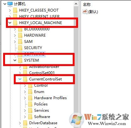 2、然后依次展開 HKEY_LOCAL_MACHINE\SYSTEM\CurrentControlSet。