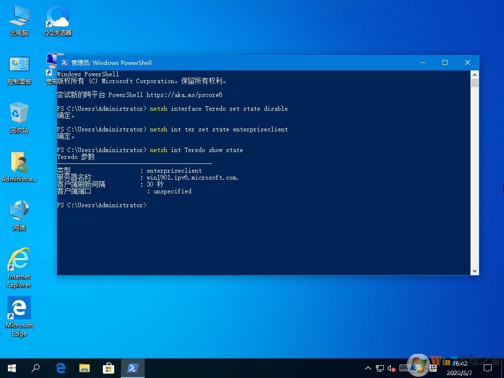 3)這時(shí)檢查服務(wù)狀態(tài),輸入“netsh int Teredo show state”: