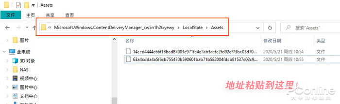 打開資源管理器,將下列地址“%localappdata%\Packages\Microsoft.Windows.ContentDeliveryManager_cw5n1h2txyewy\LocalState\Assets”粘貼到資源管理器地址欄,回車后就能打開壁紙文件夾了。