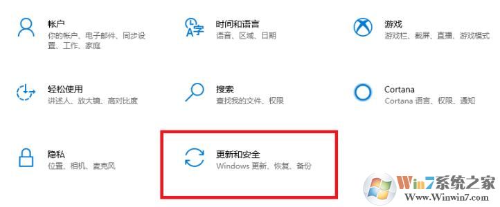 1、按下“win+i”打開“windows設(shè)置”點擊“更新和安全”。