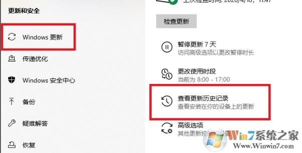 2、隨后點擊左側(cè)任務(wù)欄中的“windows更新”選擇“查看更新歷史記錄”。