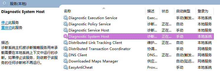 2. 在服務(wù)中找到“Diagnostic System Host”,雙擊打開:
