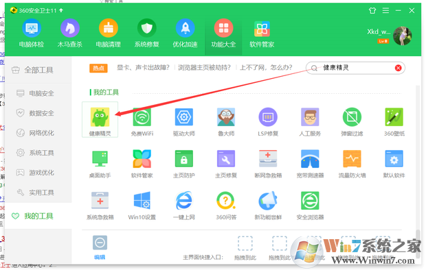 2、在右邊搜索框內(nèi)搜索“健康精靈”,進行下載;