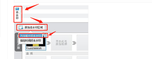 3、依次點擊"去水印","添加去水印區(qū)域","為當前片段去水印";