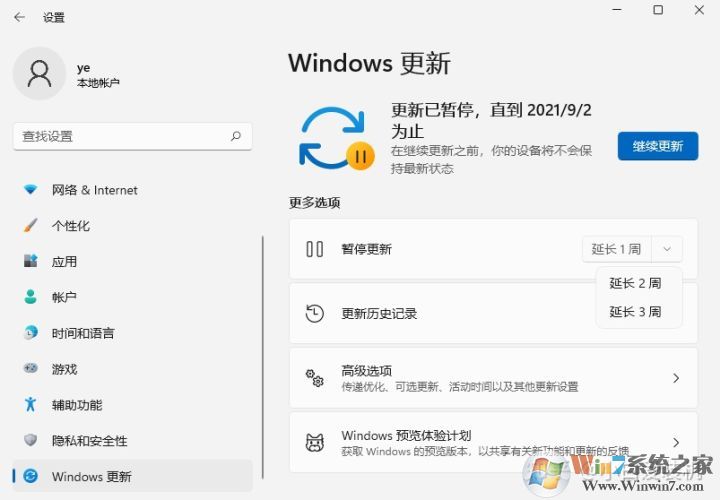 3、這時(shí)用戶可以暫停更新,延長(zhǎng)1周2周3周,可以等到大家更新都穩(wěn)定了再繼續(xù)更新。