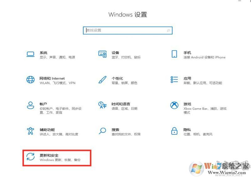 2、在Windows設(shè)置界面選擇更新和安全選項;