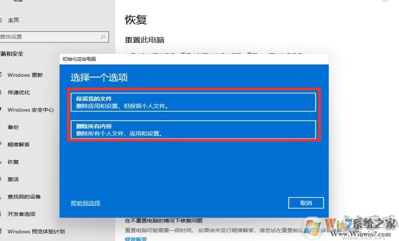4、這里需要大家選擇是否保留文件或是刪除所有文件,這點和Win10一樣。