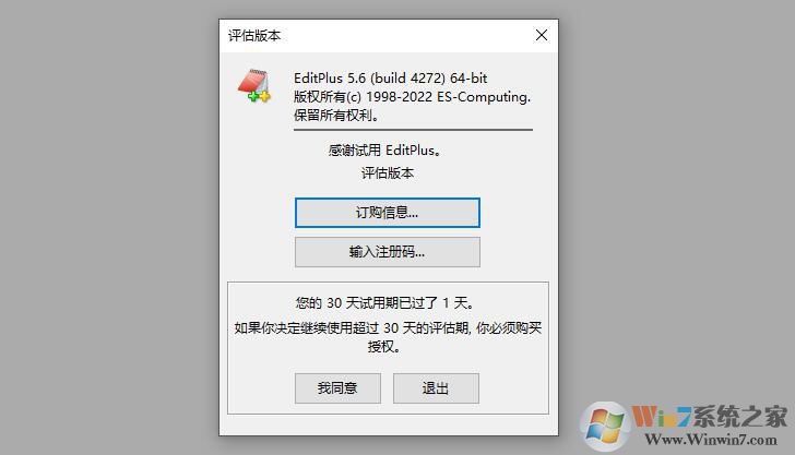 1. 打開(kāi) EditPlus 進(jìn)入主界面,彈出下圖表示軟件還沒(méi)有進(jìn)行注冊(cè)激活;