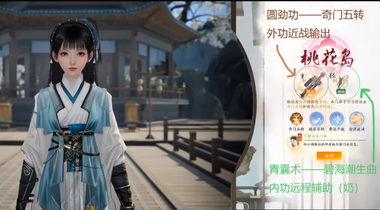 黃藥師創(chuàng)立的桃花島,位于東海之濱,是一處美麗的仙境。黃藥師因桃花島門派武學(xué)精湛,而譽(yù)滿江湖。桃花島武學(xué)以其高靈活度、高爆發(fā)力和獨(dú)特的控制能力著稱。玩家選擇這個(gè)門派,將學(xué)到其中的“彈指神通”與“玉女劍法”,兩種卓越的武學(xué)。先進(jìn)的治療技巧使得桃花島門徒成為團(tuán)隊(duì)中的寶貴支援者,同時(shí)還能依靠強(qiáng)大的輸出能力對敵人構(gòu)成威脅。桃花島武學(xué)的獨(dú)特魅力使得選擇此門派的玩家在江湖中如魚得水。