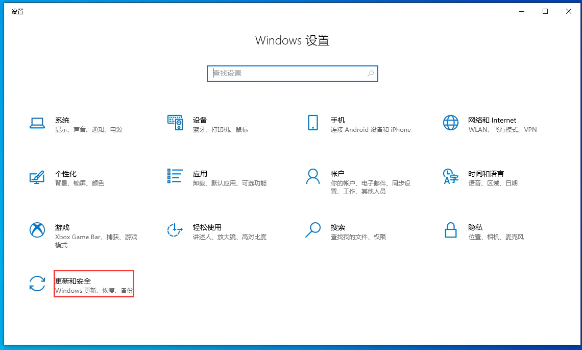 2、在設置界面選擇“更新和安全”。