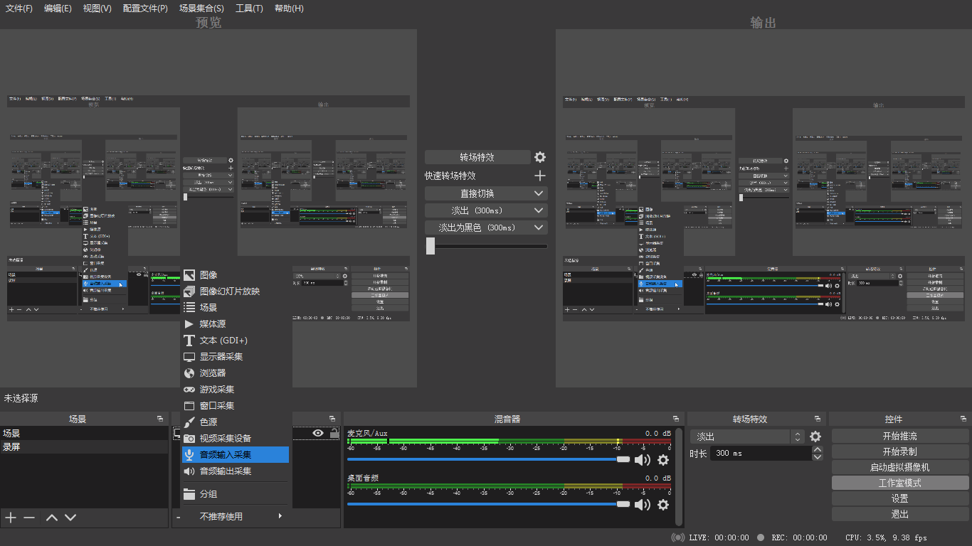 添加音頻輸入采集,就可以在錄屏時錄制聲音,添加時選擇自己要用的麥克風即可。