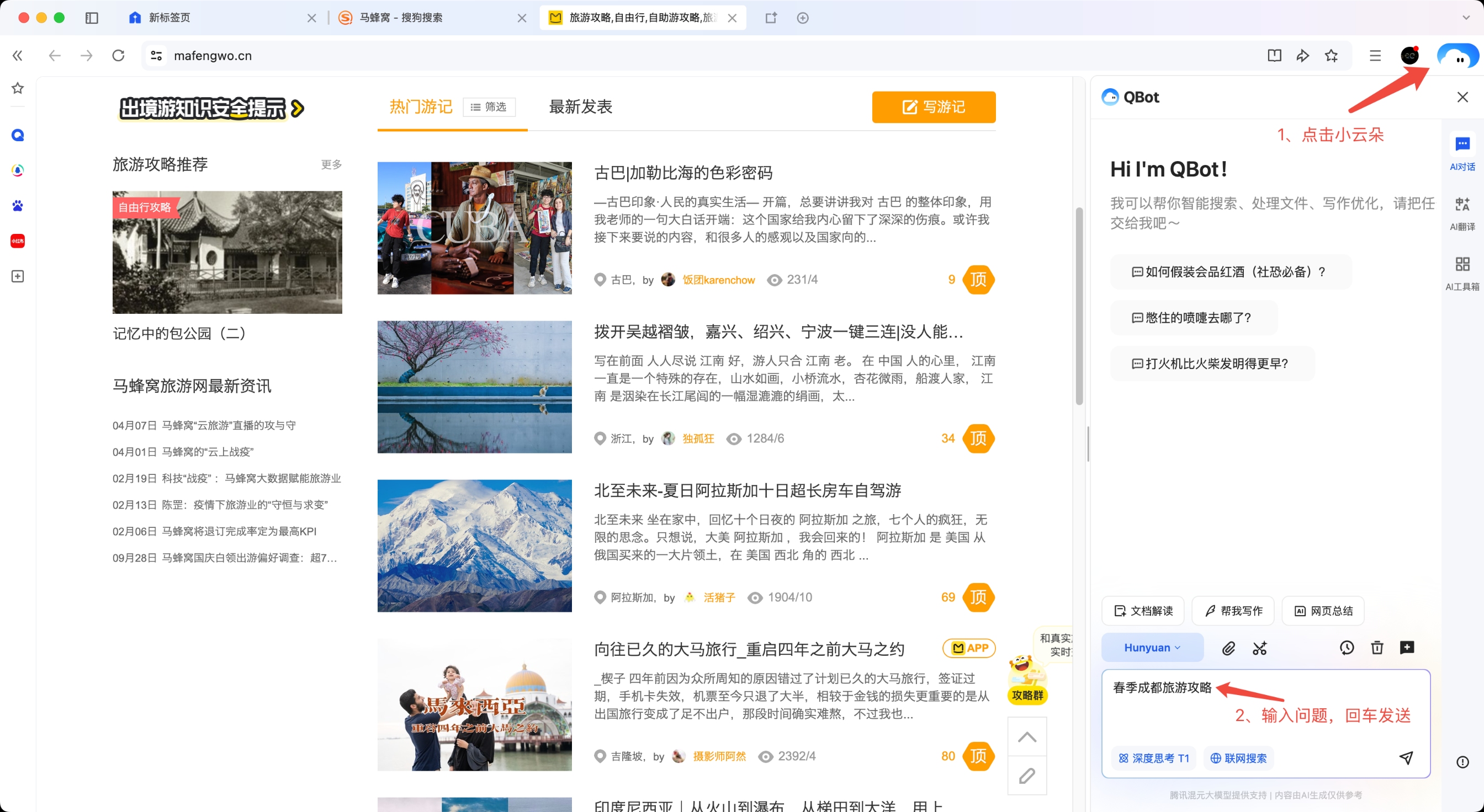 (2)任意頁面:點擊 “小云朵”,在右下角輸入框中輸入問題,點擊搜索