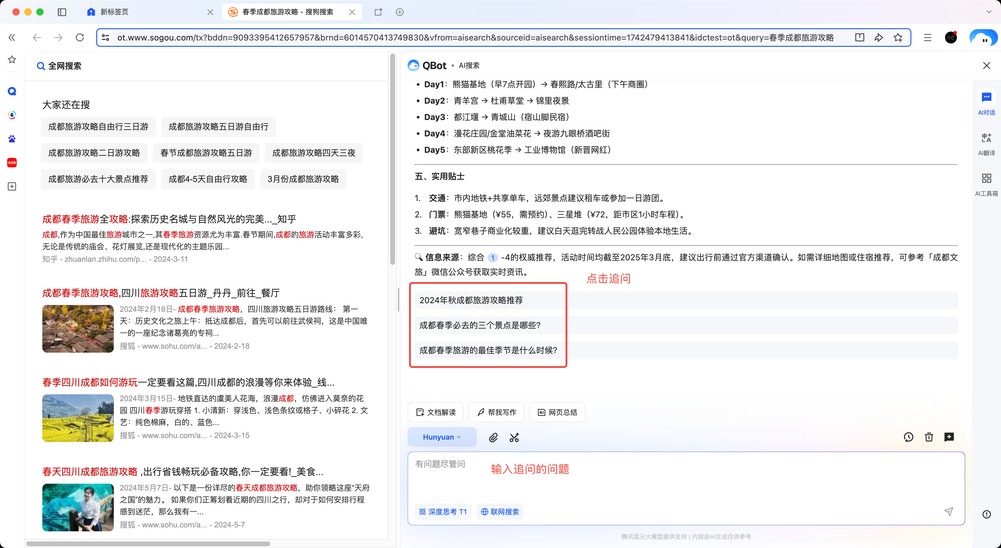 (2)或者右下角輸入框輸入追問問題