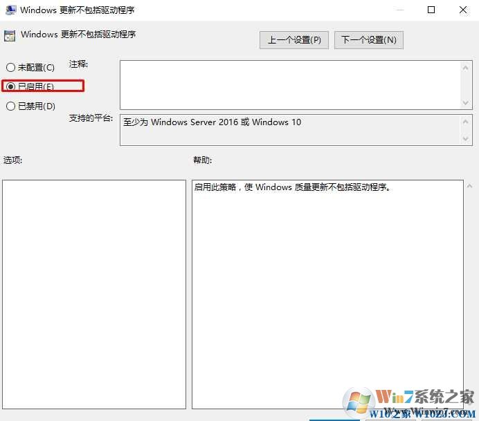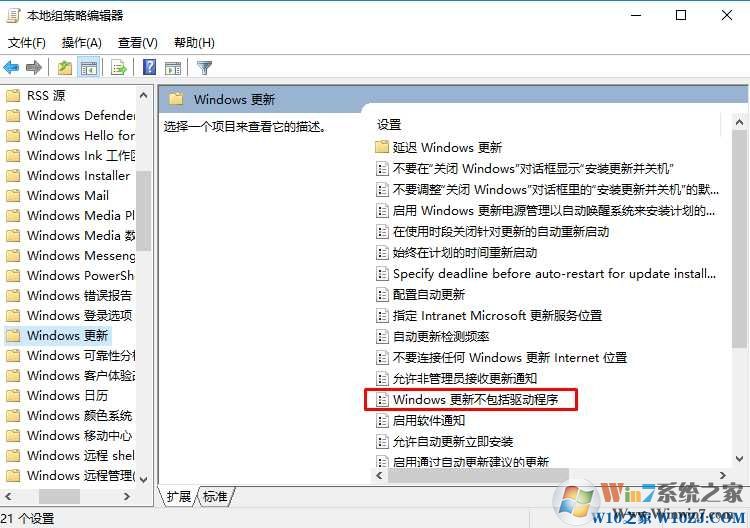 3、然后在右側雙擊 Windows7更新不包括驅動程序 設置為 已啟用;www.w10zj.com