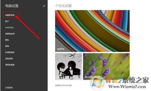 2、在“電腦設(shè)置”中,點(diǎn)擊“電腦和設(shè)備“
