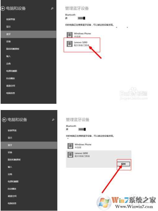 4、當(dāng)藍(lán)牙搜索到手機(jī)并出現(xiàn)”配對準(zhǔn)備已就緒“時(shí),我們點(diǎn)擊手機(jī),并點(diǎn)擊”配對“
