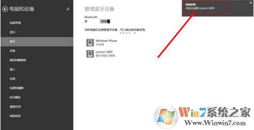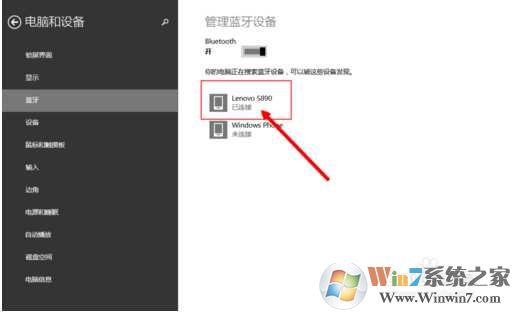 8、當(dāng)配對成功后,出現(xiàn)”已連接“,這個時(shí)候我們就可以在手機(jī)和電腦之間傳送文件了,這時(shí)也就完成了Win8系統(tǒng)藍(lán)牙開啟和連接工作。