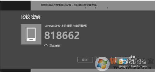 7、電腦出現(xiàn)配對密碼,手機(jī)同樣也會出現(xiàn)配對密碼,密碼相同,我們點(diǎn)擊”是“(手機(jī)和電腦都需要點(diǎn)擊”是“)