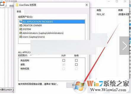 6、在打開的UserData權(quán)限頁面, 點(diǎn)擊 高級(jí) ;