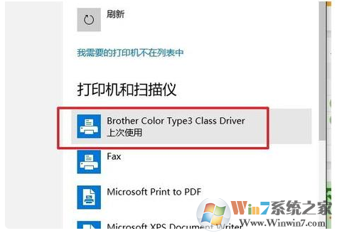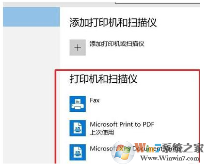 4、在“打印機(jī)和掃描儀”下面列表中可以看到系統(tǒng)默認(rèn)的幾個(gè)設(shè)備。如果你已經(jīng)裝過(guò)打印機(jī),在這里就可以看到了。