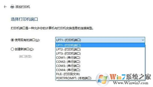 7、選擇打印機(jī)的端口,如果你的打印機(jī)是通過(guò)并口連接電腦的(DVI線),那么,這里應(yīng)該選擇LPT端口,如果是通過(guò)USB連接電腦的,這里就選擇USB001。然后點(diǎn)擊下一步