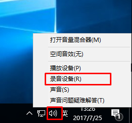 2、右鍵選擇錄音設(shè)備,進(jìn)入麥克風(fēng)設(shè)置界面;