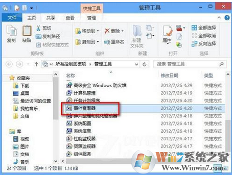 1、查看系統(tǒng)錯(cuò)誤日志:依次打開(kāi)“控制面板”---“管理工具”---“事件查看器”,如圖: