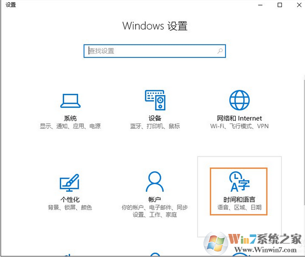 1、按Win+i打開設(shè)置界面,點擊其中的“時間和語言”選項。