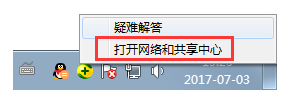 2、右擊網(wǎng)絡(luò)圖標(biāo)“打開網(wǎng)絡(luò)和共享中心”,如下圖所示: