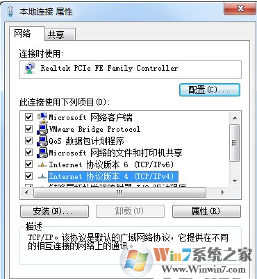 5、咱們現(xiàn)在用的IP基本都是IPV4,所以點(diǎn)擊“Internet協(xié)議版本4(TCP/IPv4)”,如下圖所示: